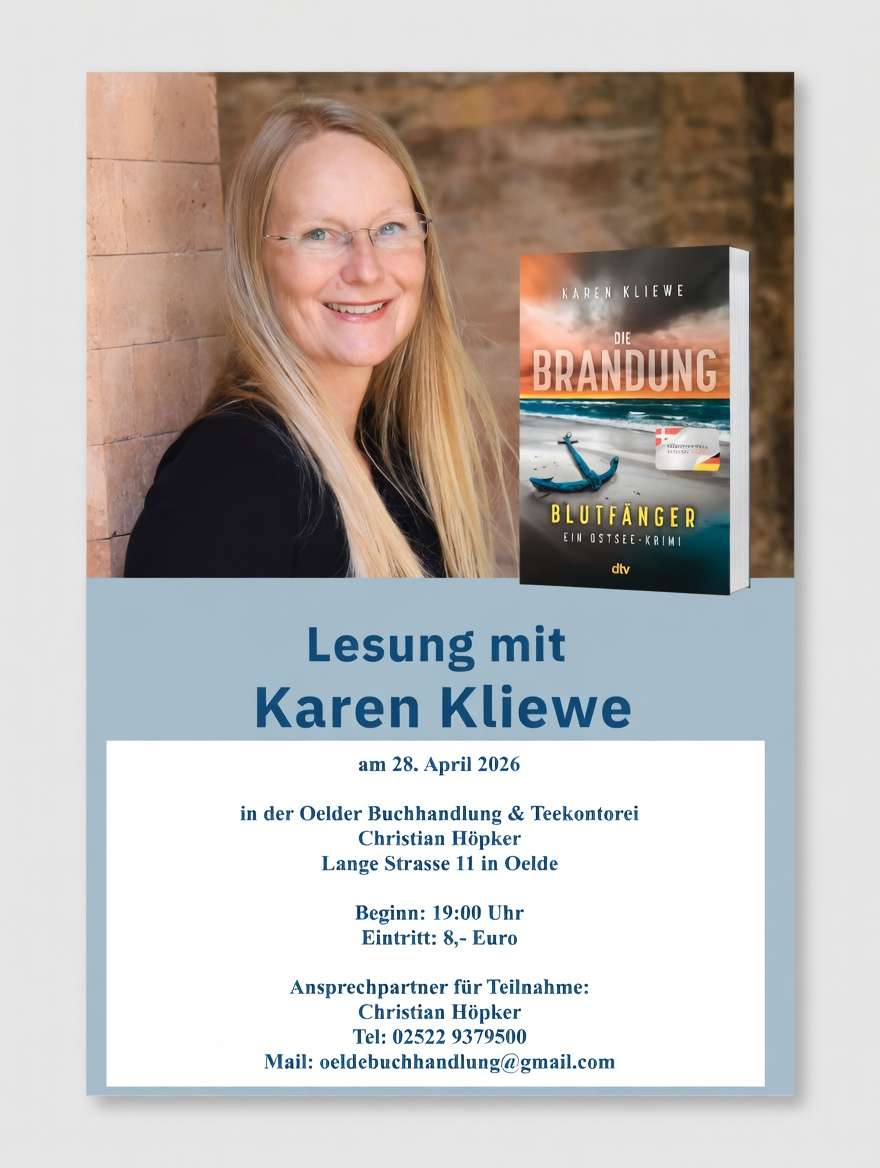 Tauchen Sie ein in fesselnde Ostsee-Spannung! Am 28. April 2026 um 19:00 Uhr liest die Autorin Karen Kliwe exklusiv in unseren Räumen. Moderiert wird der Abend von Christian Höpker.